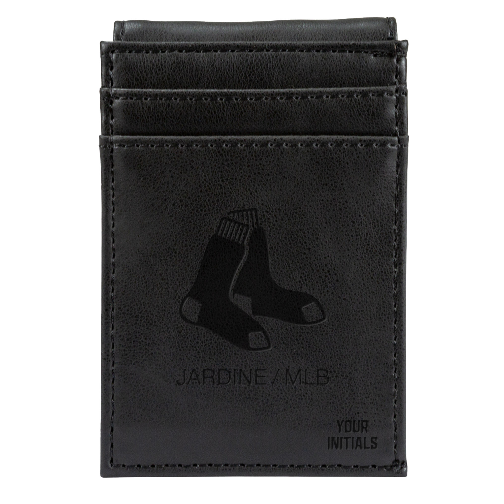 We want fans to celebrate their fandom by customizing and personalizing certain products. For these customizable products, including jerseys, we invite customers to tell us how they would like their preferred name or other text to appear by typing that text into the field indicated. However, just because a customer is able to type proposed customization text into the field and is able to complete the order through the website, not all proposed customization text will be accepted. Please note, Fanatics may reject and cancel any customization order for any reason, including for messages that are deemed offensive or inappropriate. Carry your Boston Red Sox pride everywhere you go with this Personalized Front Pocket Wallet. The leather design and laser engraved graphics make for a classic, quality look. With plenty of room for your cash and cards, this wallet will keep your essentials secure while displaying your Boston Red Sox spirit.