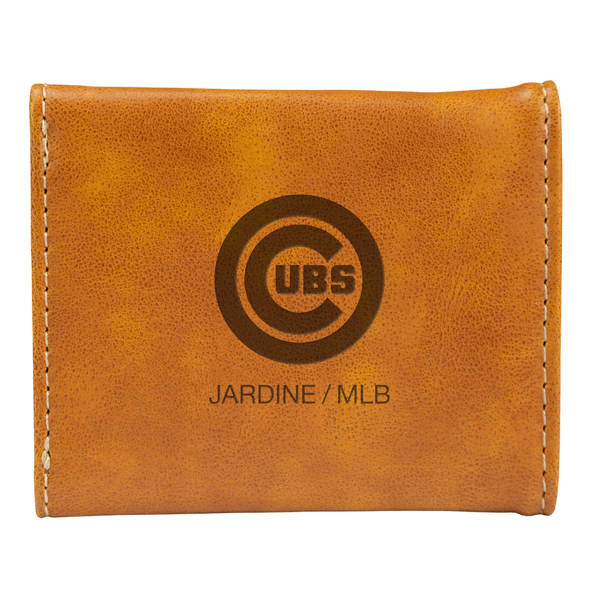 Take your team spirit everywhere you go with the Chicago Cubs Laser-Engraved Trifold Wallet. Featuring a faux leather design and larger capacity, this wallet has plenty of room for your cash and cards. And the laser-engraved graphics let you show your Chicago Cubs pride while you keep your essentials secure.