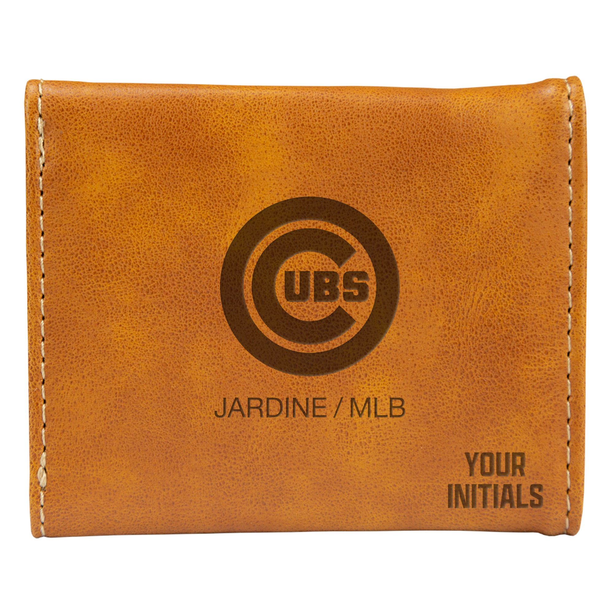 We want fans to celebrate their fandom by customizing and personalizing certain products. For these customizable products, including jerseys, we invite customers to tell us how they would like their preferred name or other text to appear by typing that text into the field indicated. However, just because a customer is able to type proposed customization text into the field and is able to complete the order through the website, not all proposed customization text will be accepted. Please note, Fanatics may reject and cancel any customization order for any reason, including for messages that are deemed offensive or inappropriate. Carry your Chicago Cubs pride everywhere you go with this Personalized Trifold Wallet. The leather design and laser engraved graphics make for a classic, quality look. With plenty of room for your cash and cards, this wallet will keep your essentials secure while displaying your Chicago Cubs spirit.