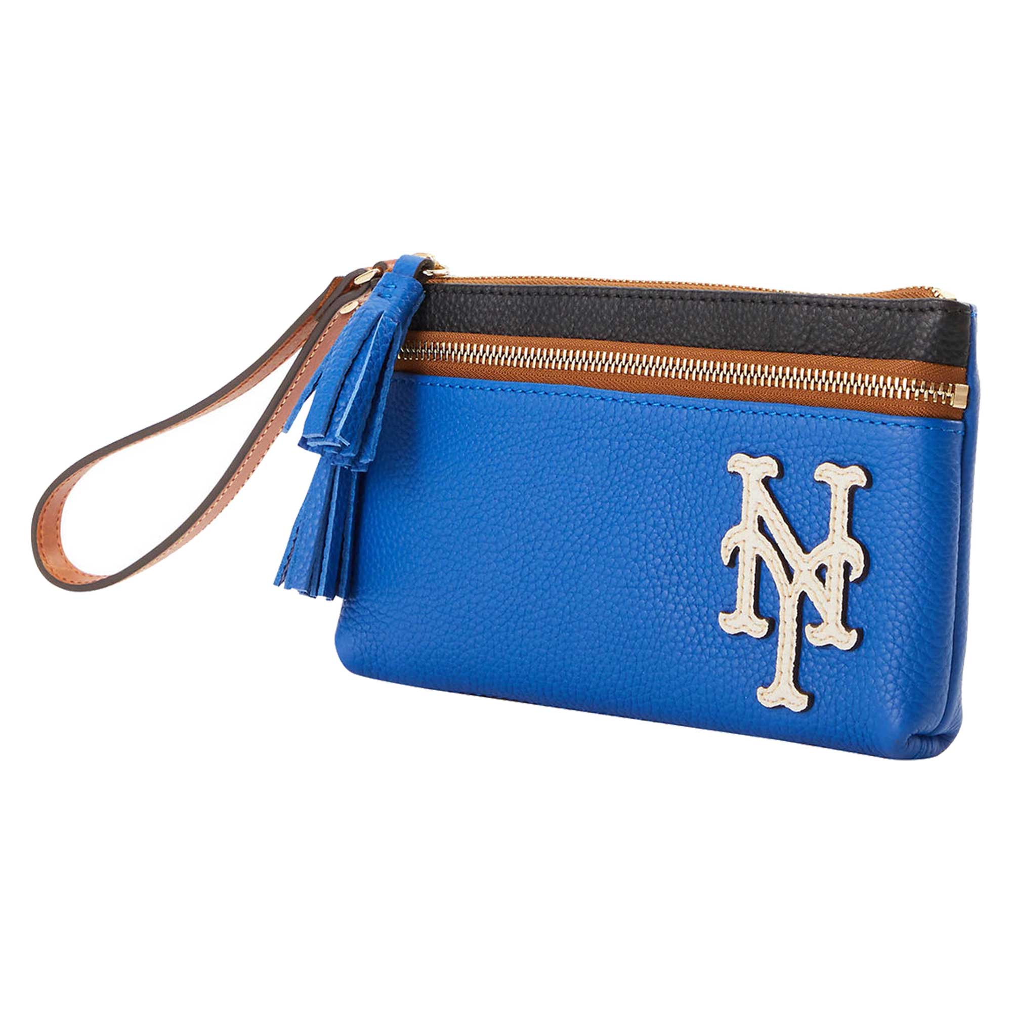 Carry around your essentials in sophisticated New York Mets fashion with this Infield Double-Zip wristlet from Dooney & Bourke. It features multiple card slots and two zippered sections to keep must-haves easily accessible. The New York Mets logo displayed in a sewn-on patch ensures your favorite team is spotlighted.