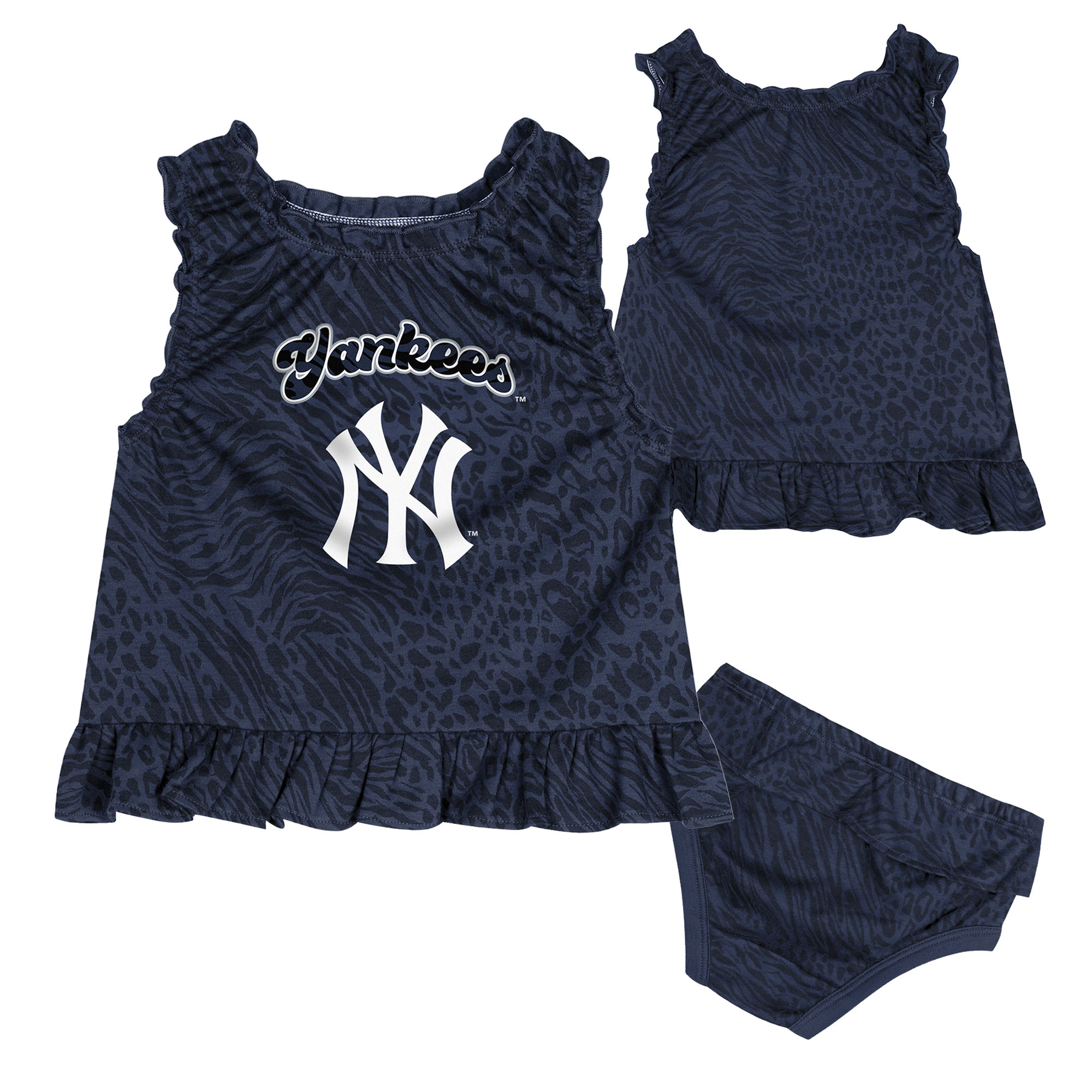 Give your littlest fan some New York Yankees team spirit with this Playground Dress & Bloomers Set. This adorable set includes a dress and bottoms, all crafted from soft, breathable cotton for all-day comfort. It’s the perfect outfit to show off your little one’s growing New York Yankees spirit, whether they’re at the ballpark, watching the game at home, or simply enjoying playtime.