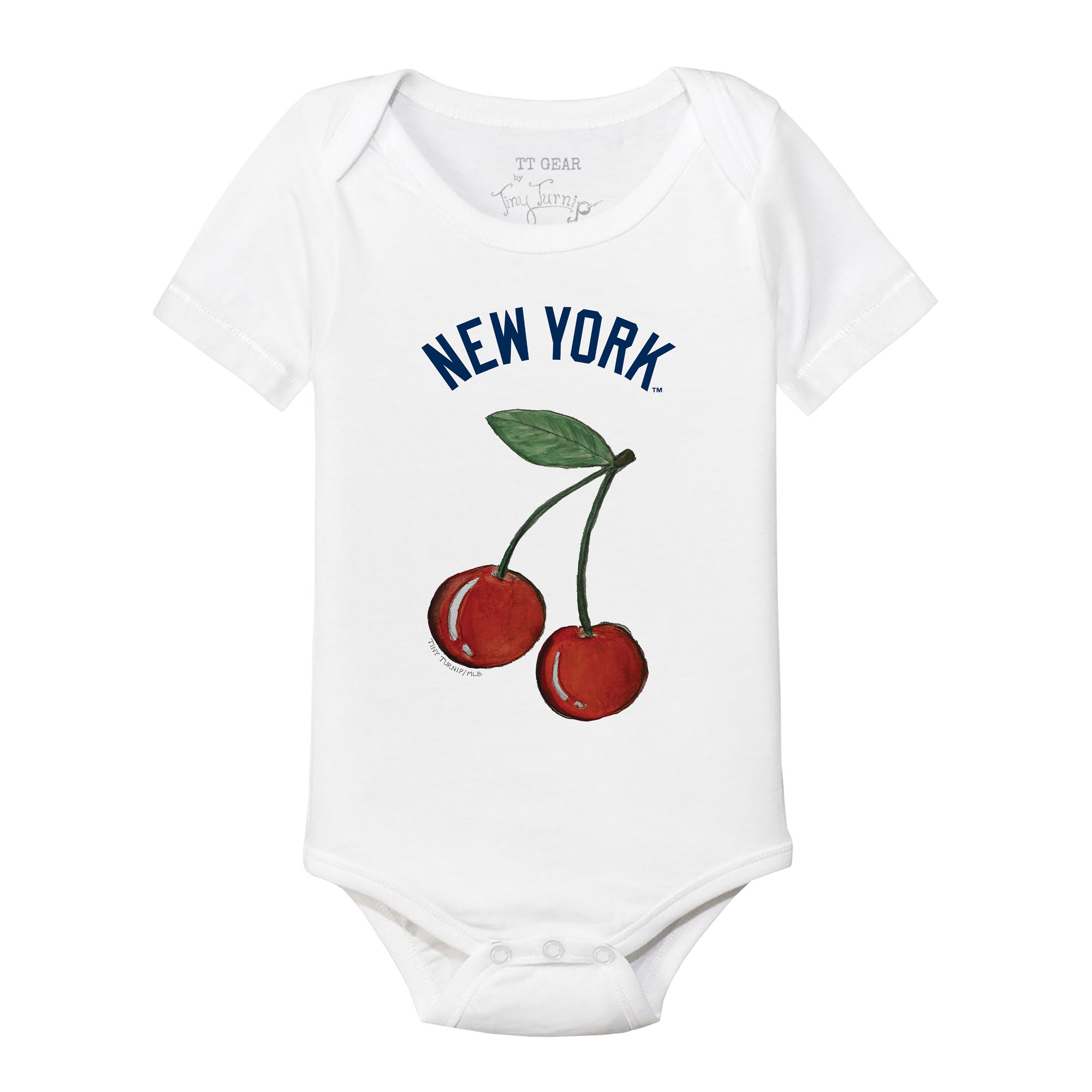Give your littlest fan some New York Yankees style with this adorable Cherries Bodysuit from Tiny Turnip. This bodysuit features a charming cherry design and the iconic New York Yankees wordmark for a touch of team spirit. Crafted from 100% cotton, this bodysuit promises both comfort and style for your little one.
