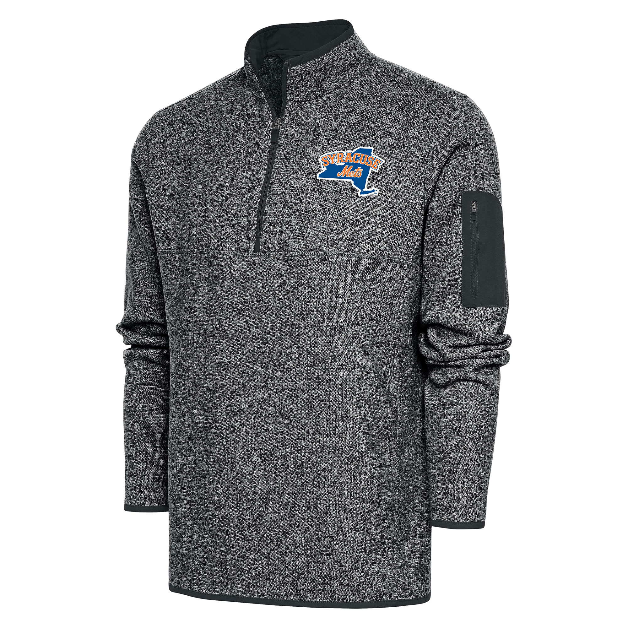 Stay comfortable and show your Syracuse Mets pride with this Antigua Fortune Quarter-Zip Pullover Jacket. This midweight pullover is perfect for game day, featuring a brushed back for comfort and welded sleeve pocket for secure storage. The Syracuse Mets graphics are sure to show your team spirit. Whether you’re at NBT Bank Stadium or watching from home, this pullover will keep you warm and comfortable while you cheer on the Syracuse Mets.