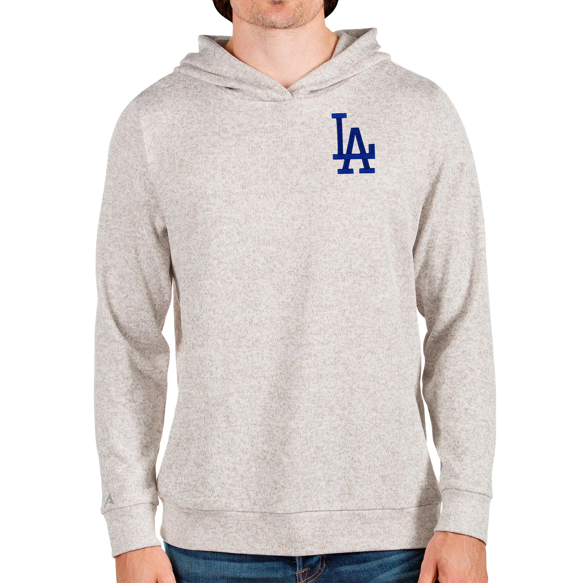 The Men’s Antigua Oatmeal Los Angeles Dodgers Absolute Pullover Hoodie is the perfect way to show your support for the Los Angeles Dodgers. Made from durable polyester, this midweight hoodie features embroidered graphics that proudly display your team pride. The hood without a drawstring provides a comfortable fit, while the custom bullets highlight the hoodie’s suitability for moderate temperatures. Whether you’re cheering on the Dodgers at the stadium or just relaxing at home, this hoodie is sure to keep you warm and stylish.