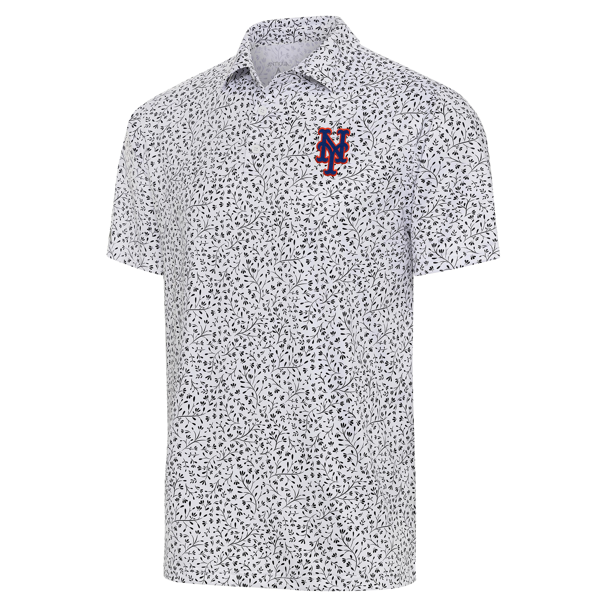 Step into the realm of baseball fandom with the Men’s Antigua White/Black New York Mets Motion Polo. This stylish polo embodies the spirit of the New York Mets, adorned with vibrant sublimated floral patterns that evoke the energy of the game. Its breathable polyester and spandex blend ensures comfort, while the embroidered graphics proudly display your unwavering support for the Mets. Whether you’re cheering from the stands or simply showing your team spirit, this polo seamlessly blends style and passion, making it the perfect choice for any true Mets enthusiast.