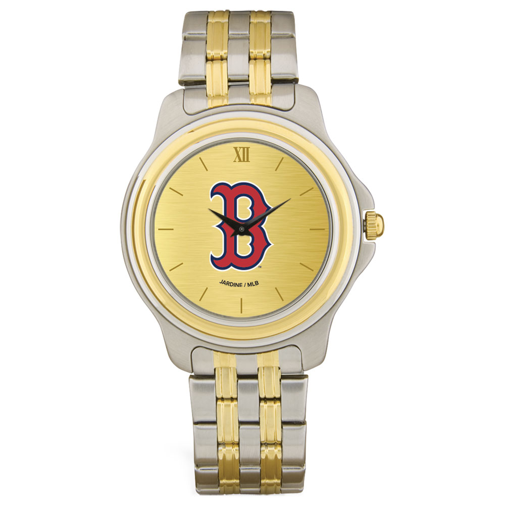 This Boston Red Sox Gold Dial Two-Tone Wristwatch is just what you’ve been looking for to help make sure you’re always on time for the next big game. This dapper time piece features eye-catching team graphics on the face and a classy two-tone design. Add it to your collection to show off your Boston Red Sox fandom in style.