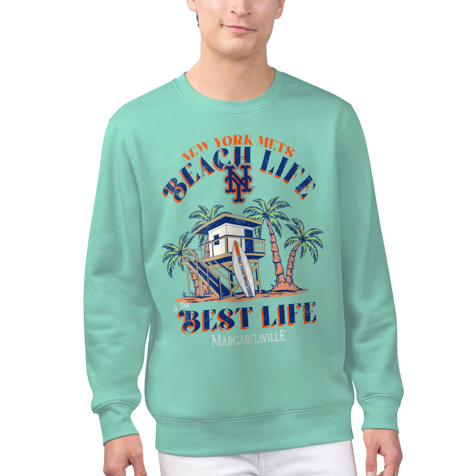 Channel those laid-back New York Mets vibes with this Margaritaville Beach Hut Graphic Pullover Sweatshirt. This midweight pullover is perfect for moderate temperatures, keeping you warm and comfortable whether you’re at the ballpark or relaxing at home. The soft fleece lining adds an extra layer of coziness, making it an ideal choice for those chilly evenings.