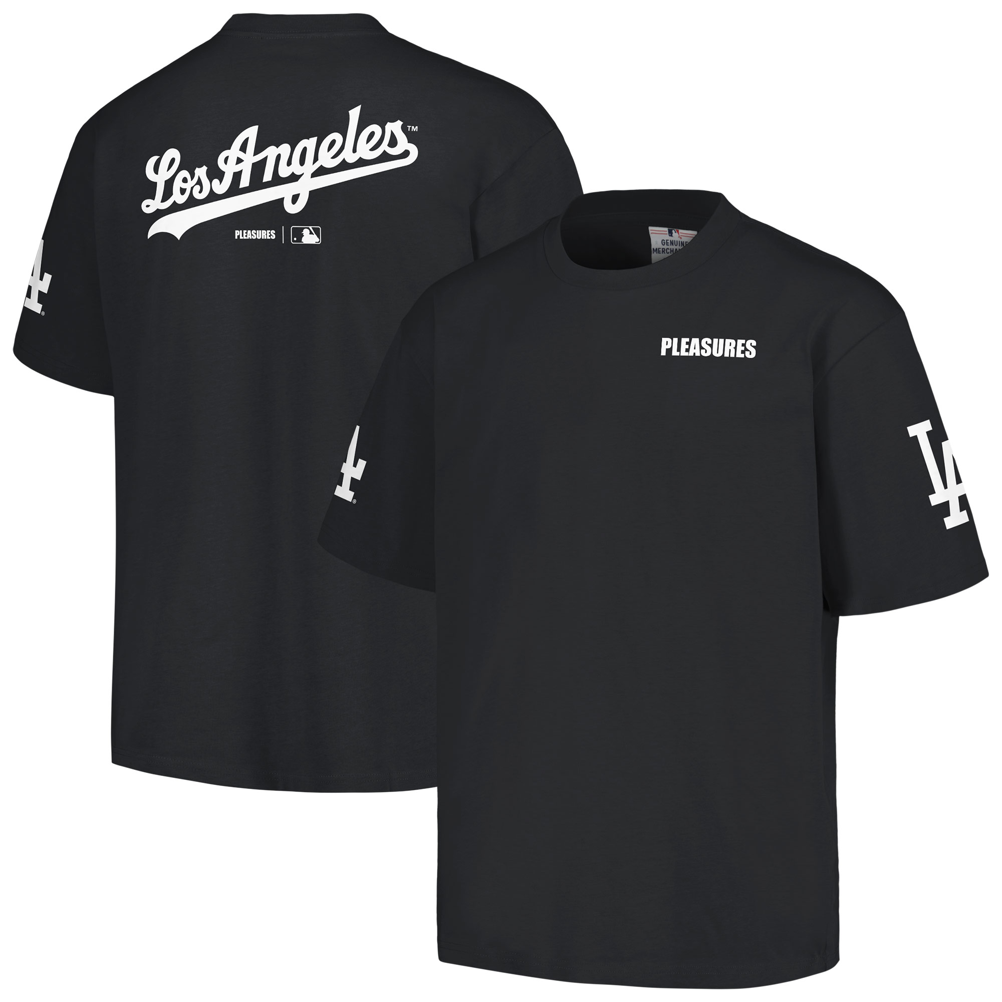 The PLEASURES Black Los Angeles Dodgers Team T-shirt is a must-have for true Dodgers fans. Bold screen print graphics proudly display unwavering support for the team. Made from soft cotton, this comfortable tee is perfect for cheering at the stadium or showing Dodgers pride anywhere.