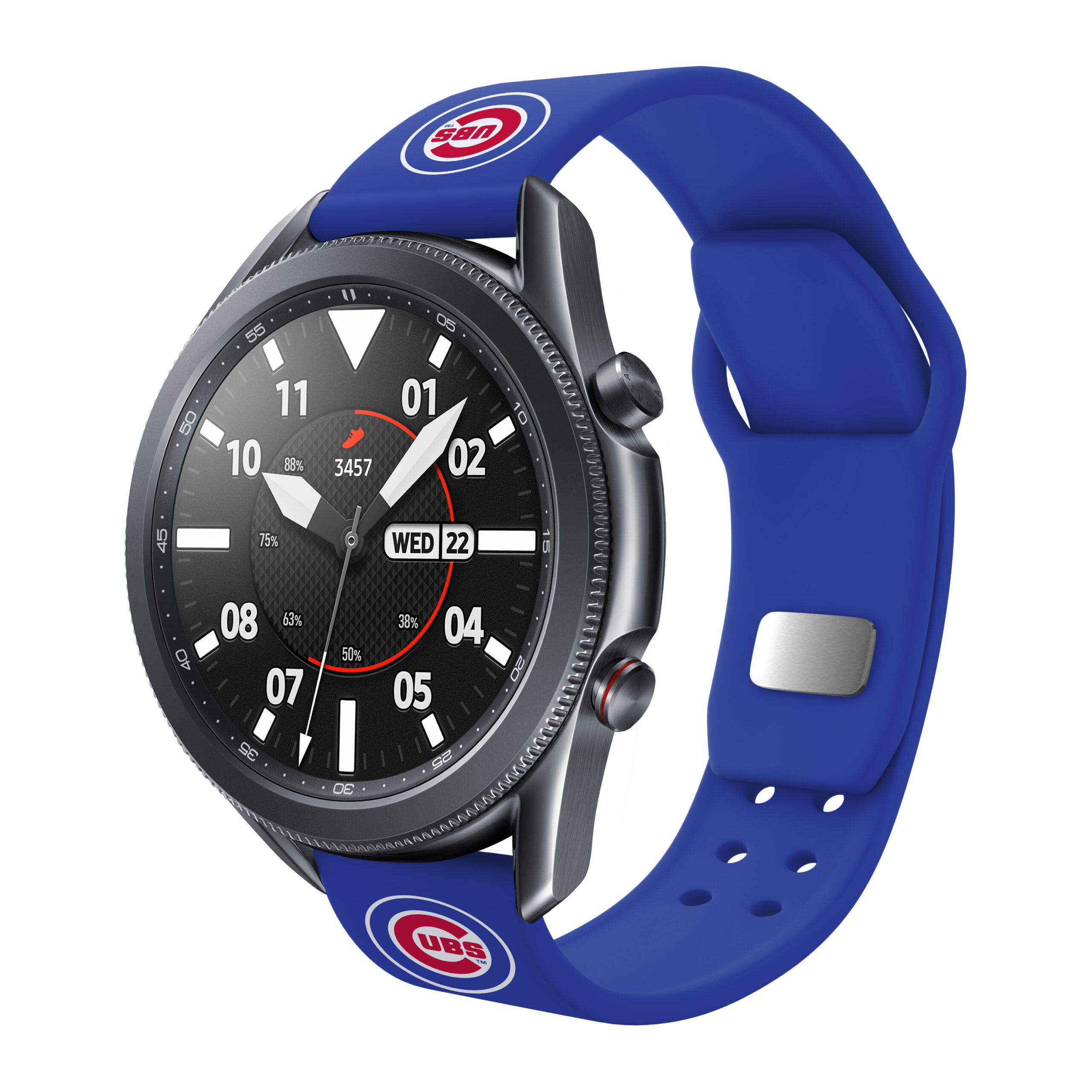 This 22mm Samsung Compatible Watch Band is great for any Chicago Cubs fan on the go. With a silicone band and a stainless steel clasp, this piece is a stylish way to show off your fandom. Add this band to your Chicago Cubs collection today.