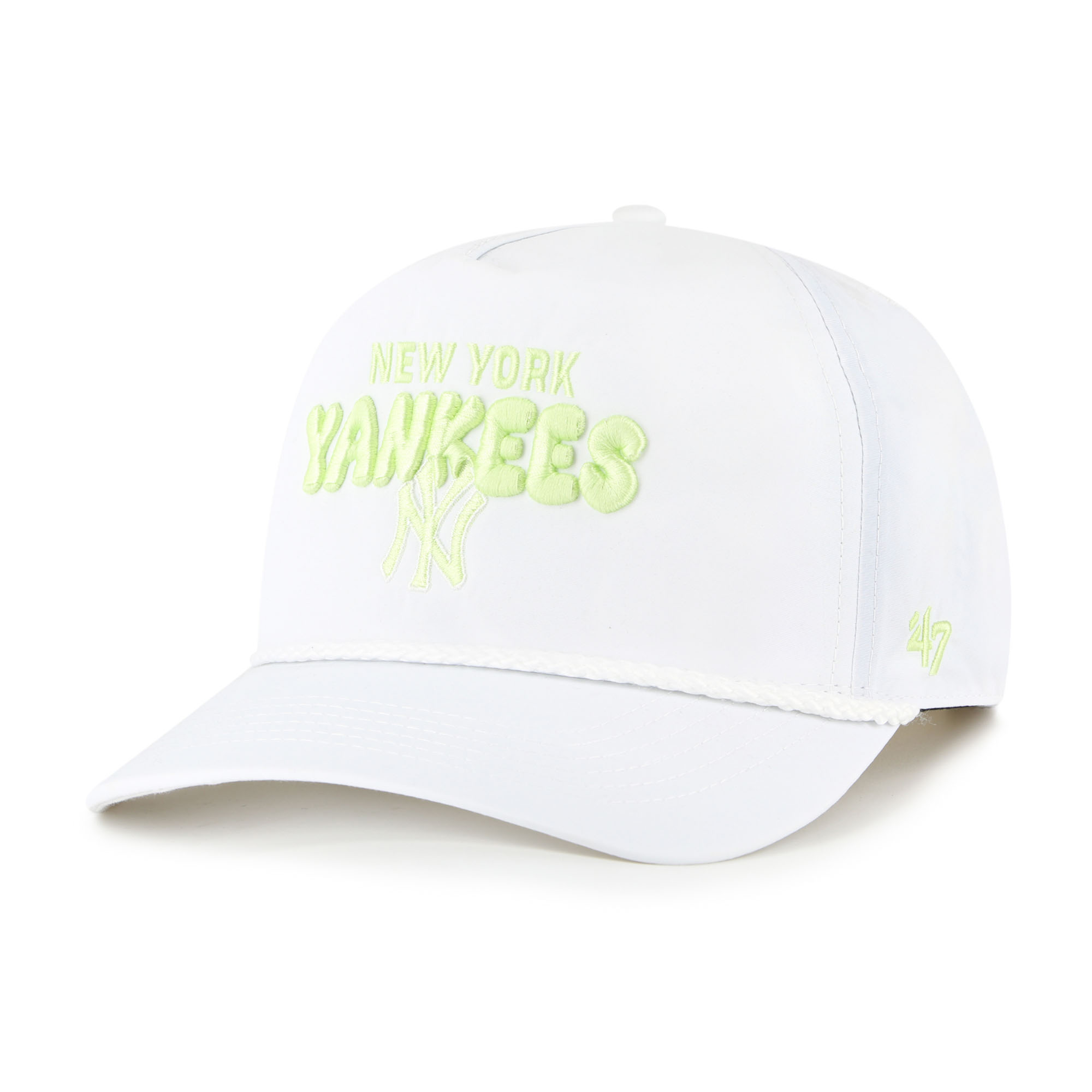 Let your New York Yankees pride shine with this ’47 Bright Side Adjustable Hitch Hat. This stylish hat features a unique five-panel construction with a pinched front panel, adding a touch of flair to the classic baseball cap silhouette. The embroidered New York Yankees wordmark in playful bubble letters adds a fun and eye-catching detail that’s sure to turn heads.
