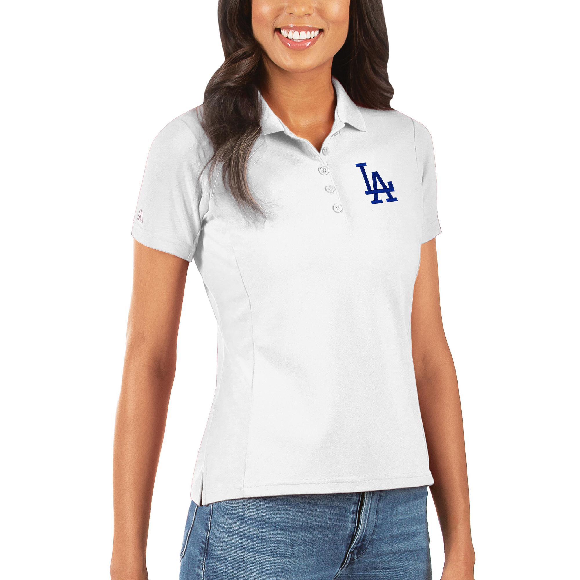 Embrace the legacy of the Los Angeles Dodgers with the Women’s Antigua White Los Angeles Dodgers Legacy Pique Polo. Its moisture-wicking fabric keeps you comfortable, while the embroidered graphics proudly display your team spirit. The five-button placket and flat knit collar add a touch of sophistication, and the princess and underarm seams provide a flattering fit. Whether you’re cheering from the stands or simply showing your support, this polo is the perfect way to represent the Dodgers.