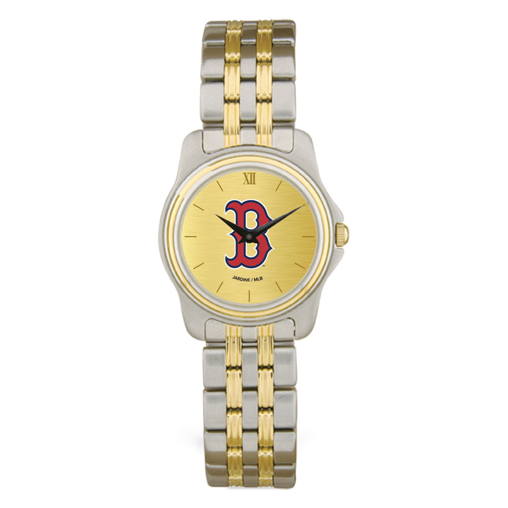 This Boston Red Sox Gold Dial Two-Tone Wristwatch is just what you’ve been looking for to help make sure you’re always on time for the next big game. This dapper time piece features eye-catching team graphics on the face and a classy two-tone design. Add it to your collection to show off your Boston Red Sox fandom in style.