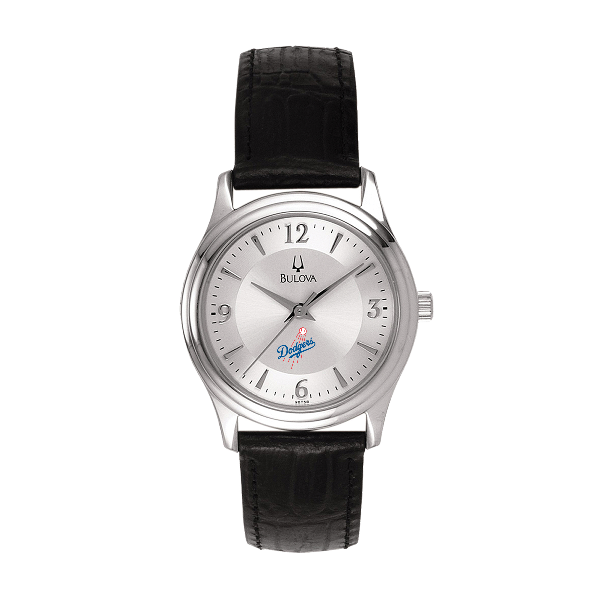 This Los Angeles Dodgers Leather Strap Watch was meticulously crafted by Bulova to provide an elegant and fashionable accessory that effortlessly highlights your team spirit. It showcases a round faced silver dial with Arabic numerals for an elevated timepiece that is sure to become a favorite in your selection. Adjust the black leather strap to your preferred fit for a sleek piece of Los Angeles Dodgers flair that will add style to any look.
