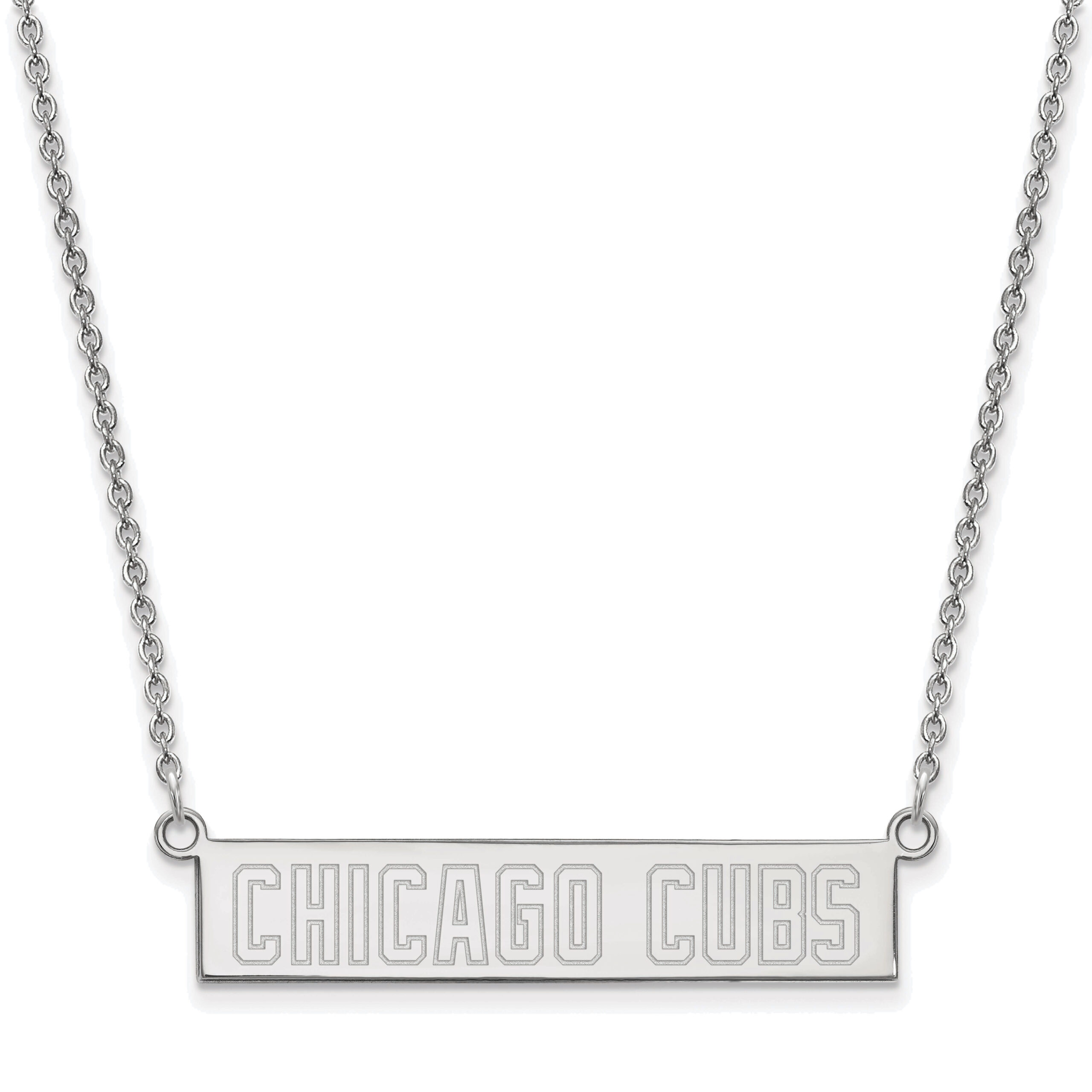 Show off your pride for your Chicago Cubs with this one-of-a-kind Sterling Silver Small Bar Necklace!