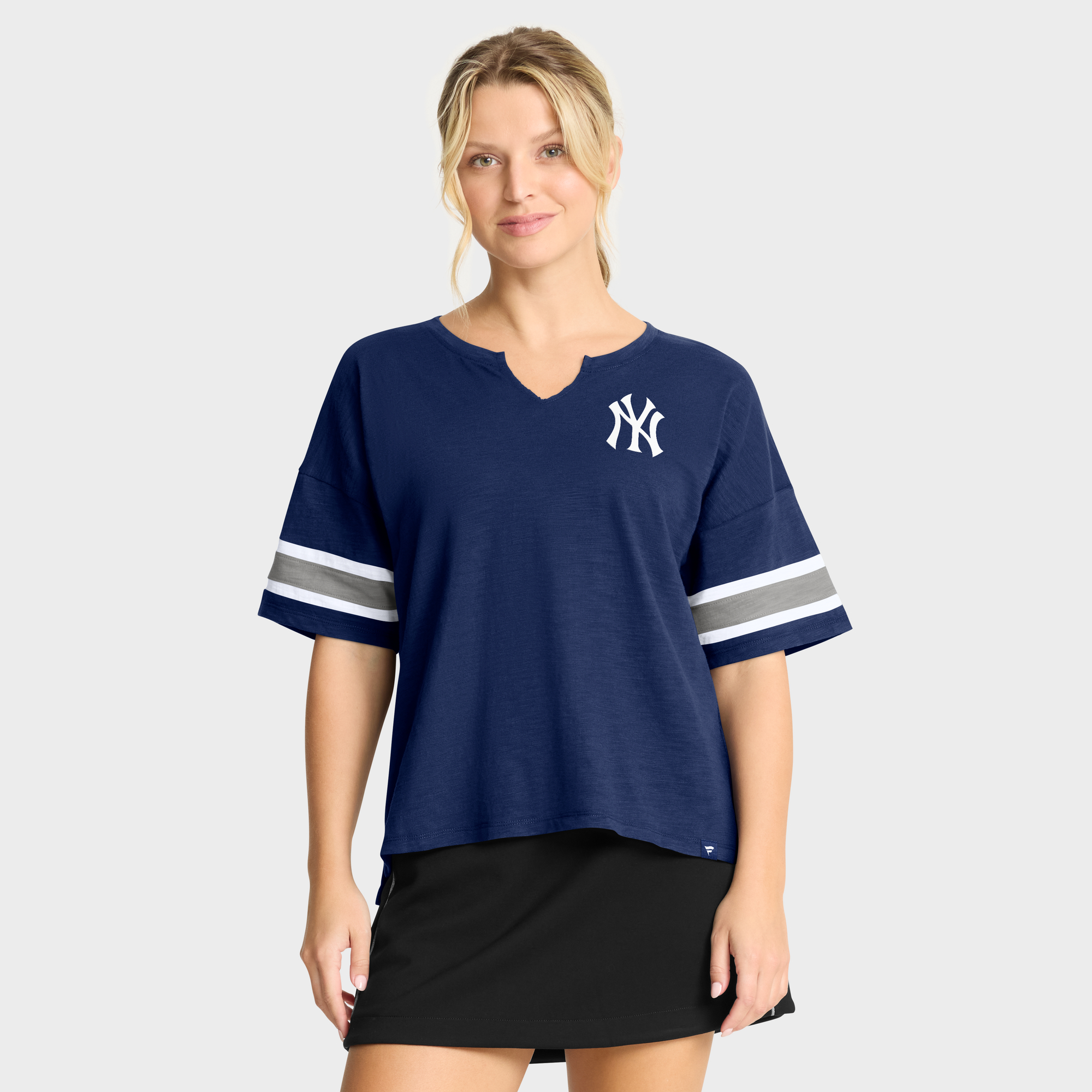 Put together a fashionable New York Yankees outfit with this Curl Route T-Shirt by Fanatics. Its relaxed fit and dropped shoulders create a flattering look that pairs perfectly with your favorite bottoms. The rounded droptail hem adds extra coverage, making this New York Yankees tee comfortable to wear all day.