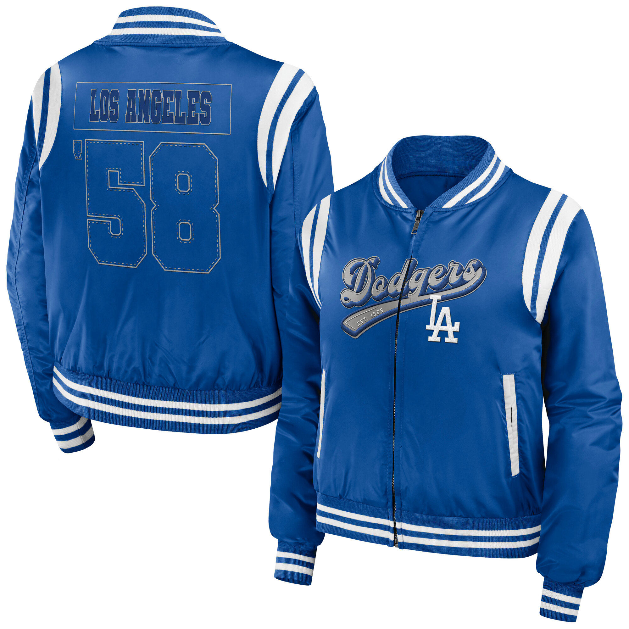 Don’t sacrifice comfort for style. This Football Bomber Jacket, part of the WEAR by Erin Andrews collection, features embroidered Los Angeles Dodgers graphics on the front and back, along with a heavyweight build so you can stay warm while showing off your squad. The ribbed collar, cuffs, and waist will provide a snug fit that keeps the elements out. The two front pockets are the finishing touch, allowing for hand warmth and storage for valuables.